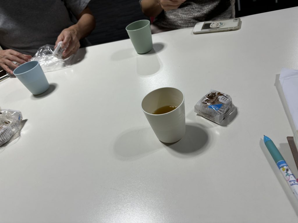 伊藤さんが、秋らしく栗のスイーツを差し入れてくれお茶とコップも用意してくれて話し合いスタート!