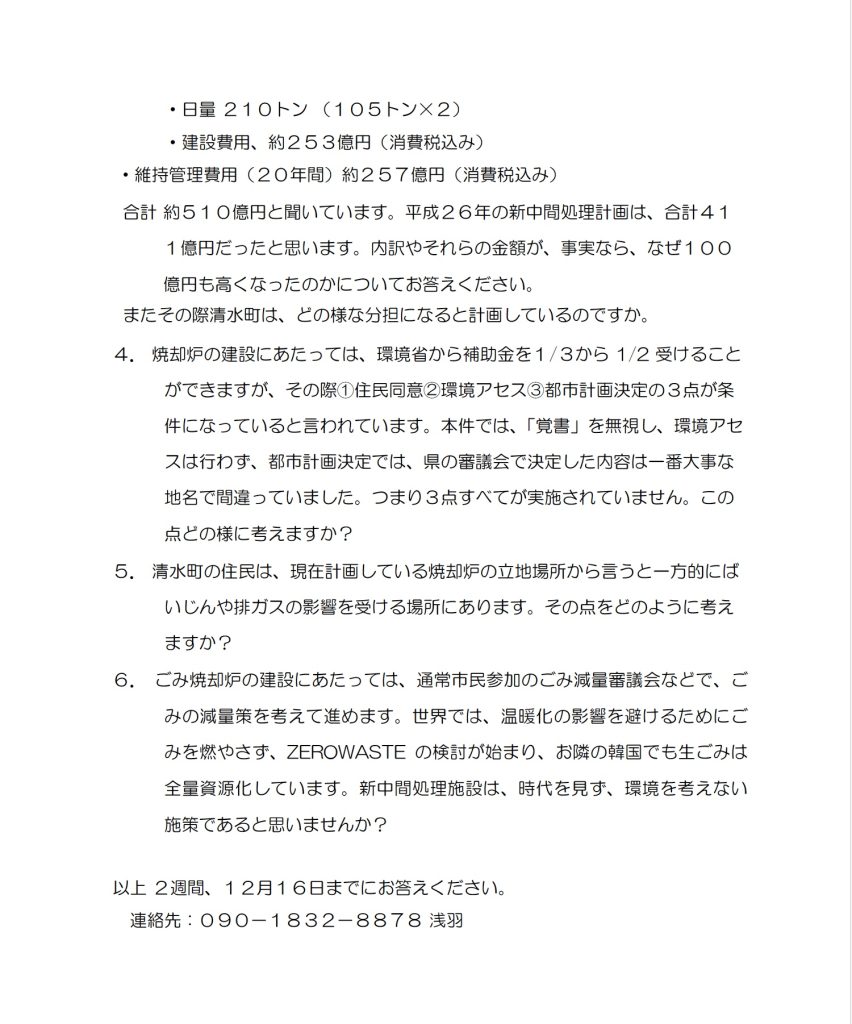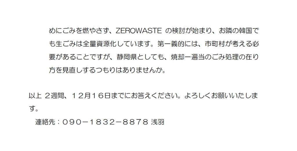 次に ごみ処理を沼津市に委託し燃やしてもらう立場の清水町に対しての質問状
