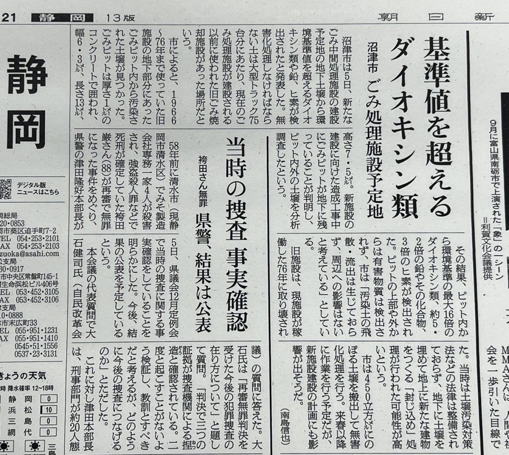 裁判で覚書や新設されるごみ処理施設について追求している最中に発覚したこの事件について沼津市は市民説明もせず粛々と施設整備を進めています。